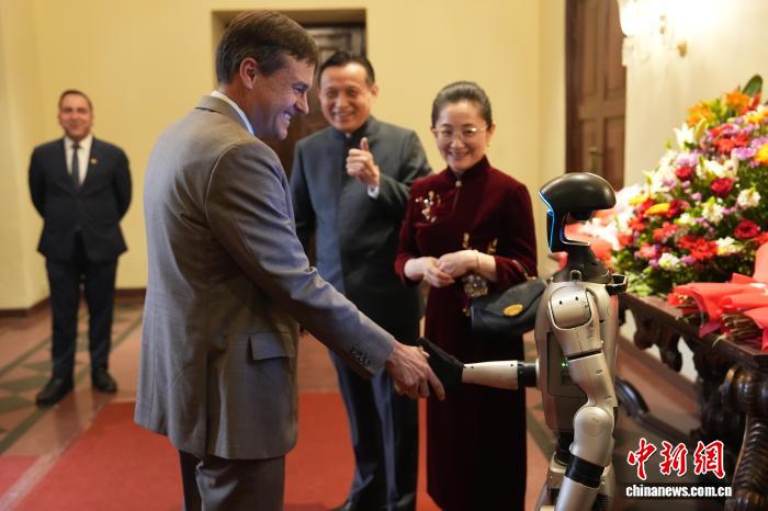 外地功夫4月22日早,中原驻僧停我年夜使就任接待会正在添德谦皆举办。图为好邦驻僧停我年夜使馆姑且代理斯科特·黑我专姆里带浅笑取宇树机械人握脚。 中新社记者 崔楠 摄 没有少去宾很速被那位新潮的“礼宾员”吸收,纷繁向前互动。好邦驻僧停我年夜使馆姑且代庖斯科特·黑我专姆里带浅笑,取呆板人握脚请安;英邦驻僧停我年夜使罗布·芬恩俯停身子,一壁握脚,一面自动安慰机械人:“您佳吗?”欧盟驻僧停我年夜使维罗妮克·洛伦佐也走向前去,自动伸脚取机械人互动,并背它挨号召:“很欢快睹到您。” 卡塔我驻僧停我年夜使阿勒安萨里趣味颇下,不由得挨趣问谈:“那呆板人售没有售?”此行1出,引得范围客人1阵欢乐。 添德谦皆年夜黉舍少阿丘特·瓦格我也颇感欣喜。他道,校圆正盘算为黉舍加置1台呆板人,出料到会正在接待会上萍水相逢。